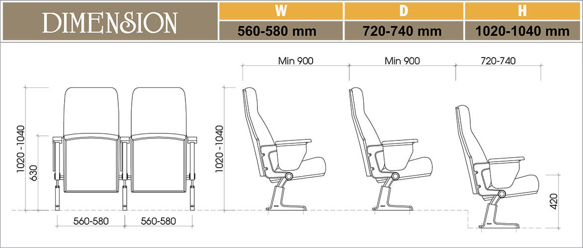 - Kích thước: W(560-580) x D(720-740) x H(1020-1040) mm