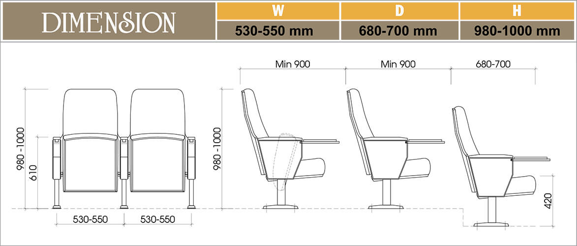 - Kích thước: W(530-550) x D(680-700) x H(980-1000) mm.