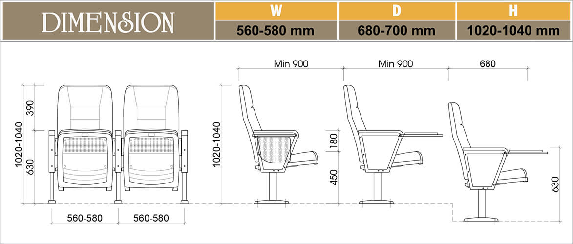 - Kích thước: W(560-580) x D(680-700) x H(1020-1040) mm