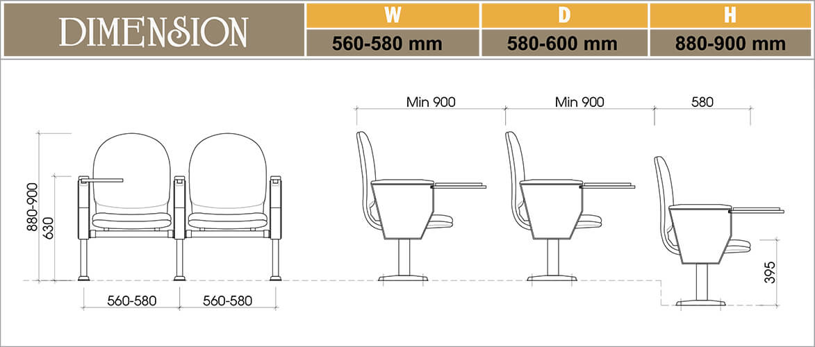 - Kích thước: W(560-580) x D(580-600) x H(880-900) mm