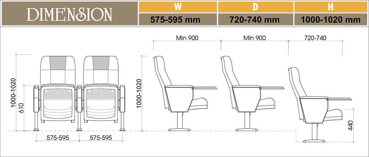 - Kích thước: W(575-595) x D(720-740) x H(1000-1020) mm