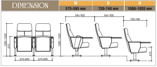 - Đệm ghế có hệ thống giảm chấn giúp đệm lật lên nhẹ nhàng khi không sử dụng