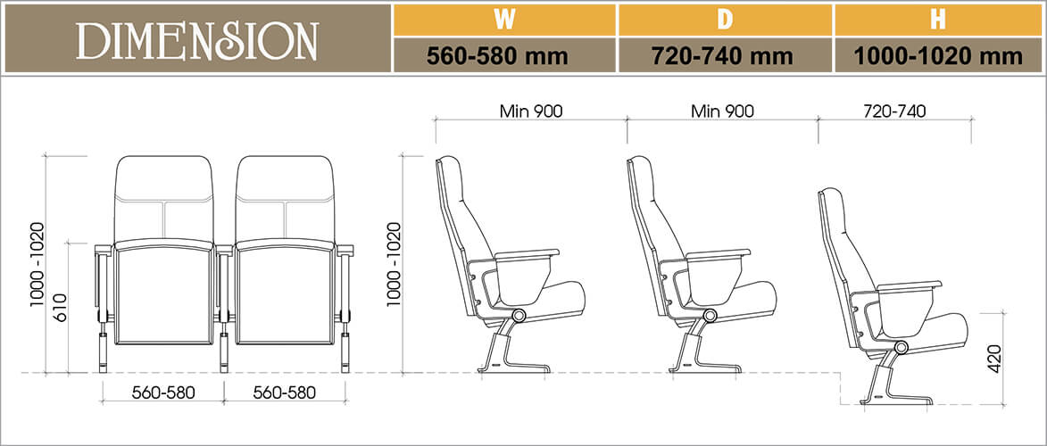 - Kích thước: W(560-580) x D(720-740) x H(1000-1020) mm