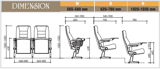 - Đệm ghế có hệ thống giảm chấn giúp đệm lật lên nhẹ nhàng khi không sử dụng