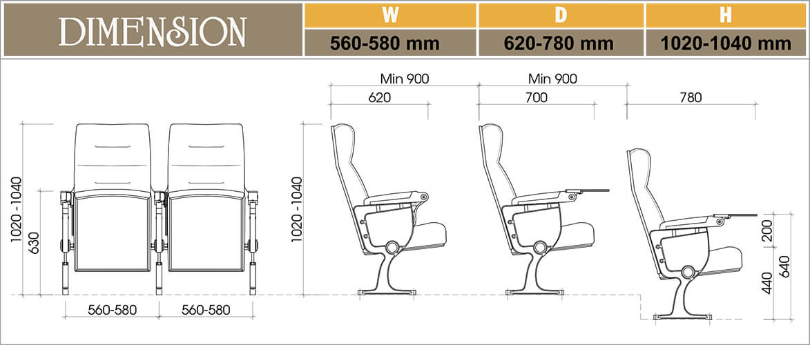 - Kích thước: W(560-580) x D(720-740) x H(1020-1040) mm