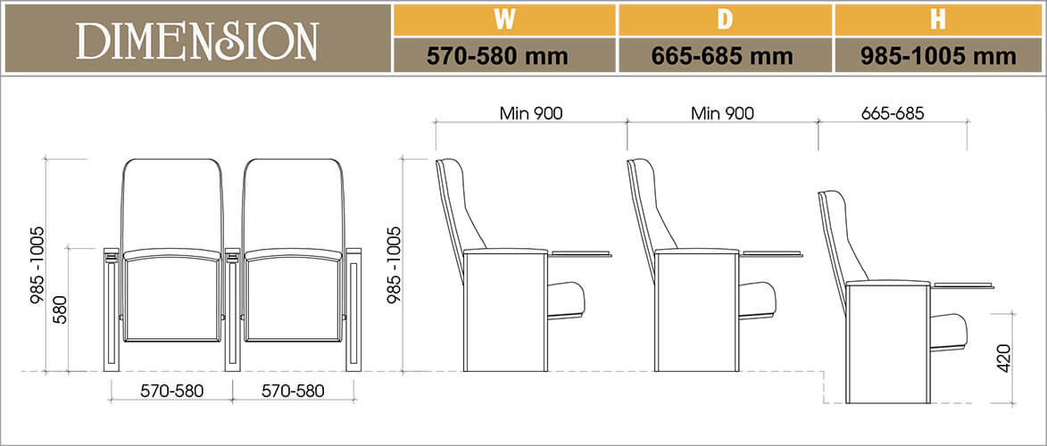 - Kích thước: W(560-590) x D(665-685) x H(985-1005) mm