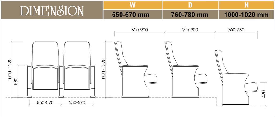 - Kích thước: W(550-570) x D(760-780) x H(1000-1020) mm